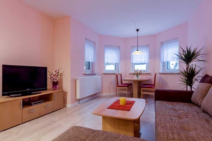 Auf den 50 m² Wohnfläche finden Sie genug Platz für 2 Personen. Für die Nacht stehen ein Doppelbett im Schlafzimmer und ein bequemes Schlafsofa im Wohnzimmer bereit. Bettwäsche und Handtücher sind vorhanden und müssen nicht mitgebracht werden.
